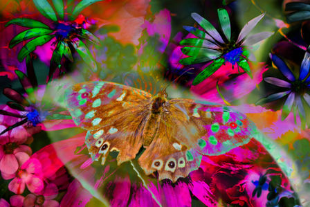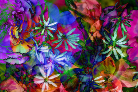 The "Floral fireworks" series contains photomontages created from multiple digital photographic images. By stacking images, the realistic images transform. They undergo a metamorphosis, resulting in a new, unique photomontage. Although the flora and fauna subjects are easily recognizable, you are left bewildered and constantly questioning what is real and what is not in the photomontages. These artworks balance on the line between reality and surrealism. All photomontages were created between the fall of 2024 and the beginning of 2025. They are made from multiple manually layered and modified digital photographic images from the photographer's archive.