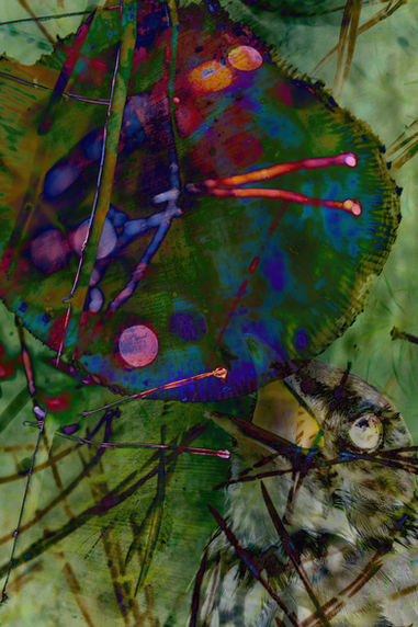 ‘The Bush Monster’ is a conceptual continuation of the rhyming story ‘What happens to leaves when they fall off trees?’ and illustrates a story with nature photography told in an anthropomorphistic manner and with an emphasis on pareidolia, highlighting arbitrary connections in nature that lead to new meanings by combining, cutting, adjusting, rearranging, decolourising, flipping, inverting, layering and mirroring digital photographic images to achieve unusual combinations which the viewer can decipher together with the complementing textual information. The project also includes digital pinhole and reversed lens images. It all includes work from other mediums such as handmade paper, organic matter and a sound track, allowing the playfulness and experimentation to further enrich the project, and providing an opportunity for children to interact with the story by actively involving visual sense in combination with textual information and auditory and tactile senses, offering a more complex engagement.